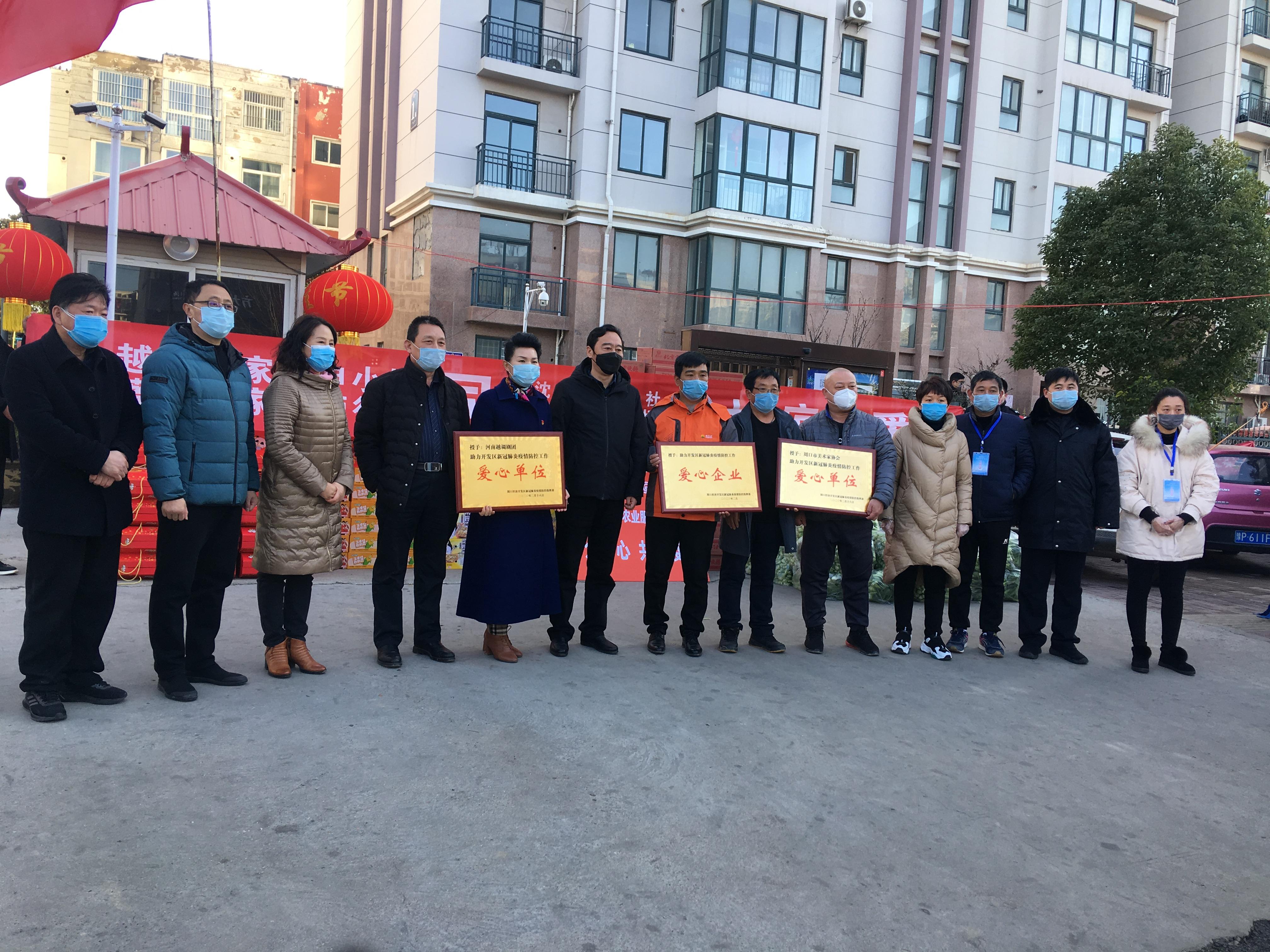 3月16日,越調(diào)名家、河南越調(diào)劇團(tuán)團(tuán)長(zhǎng)申小梅偕同愛(ài)心企業(yè)為開(kāi)發(fā)區(qū)居家隔離群眾送來(lái)生活用品,助力開(kāi)發(fā)區(qū)疫情防控工作。開(kāi)發(fā)區(qū)管委會(huì)主任劉濤,管委會(huì)副主任谷靜、于杰參加捐贈(zèng)活動(dòng)。開(kāi)元路產(chǎn)業(yè)集聚區(qū)泰和公館小區(qū)于2月3日出現(xiàn)一起疑似病例,2月4日被確診為新冠肺炎。為有效切斷病毒傳播渠道,經(jīng)開(kāi)發(fā)區(qū)和市新冠肺炎疫情防控指揮部溝通,決定對(duì)泰和公館小區(qū)居民實(shí)行居家隔離,開(kāi)發(fā)區(qū)在泰和公館小區(qū)門(mén)口設(shè)置卡點(diǎn),要求小區(qū)所有人員居家隔離。申小梅等心系被隔離群眾,積極聯(lián)系沈丘金豐公社、宛丘生態(tài)農(nóng)場(chǎng)、國(guó)風(fēng)藝術(shù)中心三家企業(yè),決定對(duì)他們實(shí)施愛(ài)心捐助。當(dāng)日,申小梅偕同沈丘金豐公社、宛丘生態(tài)農(nóng)場(chǎng)、國(guó)風(fēng)藝術(shù)中心,為泰和公館小區(qū)居民送來(lái)了小面包30箱、熱狗腸20箱、八寶粥30箱、方便面37箱、青菜50包。 開(kāi)發(fā)區(qū)管委會(huì)主任劉濤對(duì)申小梅等愛(ài)心人士的義行善舉表示感謝,表示有各界的大力支持,有廣大群眾的積極支持,有一線(xiàn)工作人員的努力付出,開(kāi)發(fā)區(qū)一定能夠戰(zhàn)勝疫情,奪取疫情阻擊戰(zhàn)的最后勝利。 開(kāi)發(fā)區(qū)疫情防控指揮部為河南越調(diào)劇團(tuán)、市美術(shù)家協(xié)會(huì)和愛(ài)心企業(yè)頒發(fā)“助力開(kāi)發(fā)區(qū)新冠肺炎疫情防控工作愛(ài)心單位(企業(yè))”牌匾。我市著名畫(huà)家?guī)熜欣⒓泳栀?zèng)活動(dòng)。