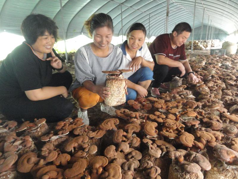 9月15日,商水縣黃寨鎮(zhèn)楊營村“蘑菇王”楊秀麗(左二),在扶貧產業(yè)園向種植戶傳授靈芝管理技術。近年來,黃寨鎮(zhèn)采用“合作社+基地+貧困戶”的模式,集種植、加工、銷售為一體,加快推進食用菌全產業(yè)鏈開發(fā),帶動300多人實現(xiàn)脫貧致富。 喬連軍 攝