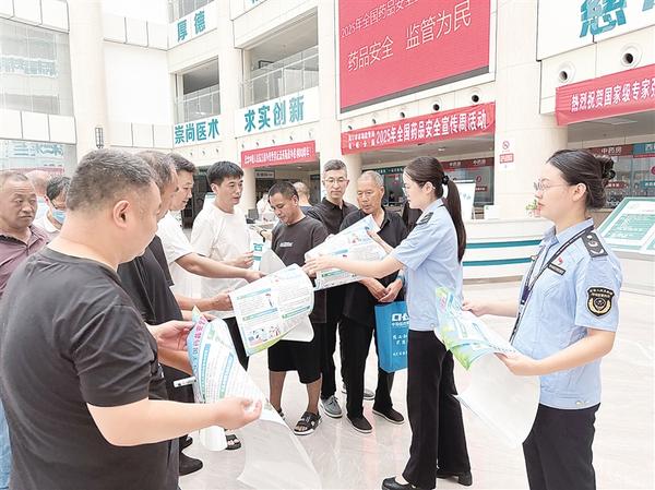 本報(bào)訊(記者 宋風(fēng) 文/圖) 9月3日,周口市市場(chǎng)監(jiān)督管理局港航分局舉行以“藥品安全、監(jiān)管為民”為主題的“藥品安全宣傳周”活動(dòng)。轄區(qū)藥品零售企業(yè)、醫(yī)療機(jī)構(gòu)、化妝品經(jīng)營(yíng)單位代表及社區(qū)群眾參加活動(dòng)。