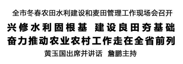 本報(bào)訊 (記者 王艷) 12月12日,全市冬春農(nóng)田水利建設(shè)和麥田管理工作現(xiàn)場會在商水召開,深入學(xué)習(xí)貫徹習(xí)近平總書記在河南考察時(shí)重要講話精神和關(guān)于“三農(nóng)”工作、治水興水的重要論述,全面落實(shí)全省冬春農(nóng)田水利建設(shè)和麥田管理視頻會議部署,分析研判當(dāng)前形勢,安排部署重點(diǎn)任務(wù),扎實(shí)推進(jìn)今冬明春農(nóng)田水利建設(shè)和麥田管理等重點(diǎn)工作。市委書記黃玉國出席并講話。市長詹鵬主持。