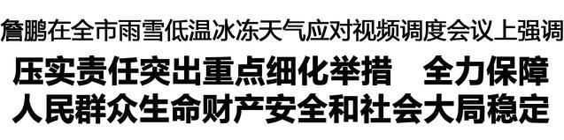 本報(bào)訊 (記者 李鳳霞) 1月18日,市長(zhǎng)詹鵬主持召開(kāi)全市雨雪低溫冰凍天氣應(yīng)對(duì)視頻調(diào)度會(huì)議,強(qiáng)調(diào)要深入學(xué)習(xí)貫徹習(xí)近平總書記關(guān)于防災(zāi)減災(zāi)救災(zāi)的重要指示精神,貫徹落實(shí)省委和市委決策部署,以“時(shí)時(shí)放心不下”的責(zé)任感,扎實(shí)有效應(yīng)對(duì)雨雪低溫冰凍天氣,確保人民群眾生命財(cái)產(chǎn)安全和社會(huì)大局和諧穩(wěn)定??钻?yáng)、朱向陽(yáng)、張建黨、程若光、王文峰出席會(huì)議。
