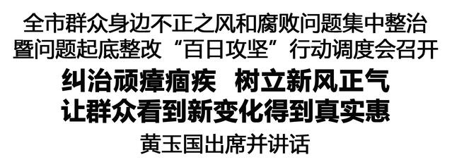 本報(bào)訊(記者 王艷 李瑞才)2月27日,全市群眾身邊不正之風(fēng)和腐敗問題集中整治暨問題起底整改“百日攻堅(jiān)”行動(dòng)調(diào)度會(huì)召開,認(rèn)真貫徹中央紀(jì)委國(guó)家監(jiān)委部署,落實(shí)全省群眾身邊不正之風(fēng)和腐敗問題集中整治總結(jié)暨2026年動(dòng)員部署會(huì)議要求,調(diào)度“百日攻堅(jiān)”行動(dòng),部署2026年工作,聚力攻堅(jiān)、決戰(zhàn)決勝集中整治,不斷推動(dòng)全面從嚴(yán)治黨向基層延伸,讓群眾看到新變化、得到真實(shí)惠。市委書記黃玉國(guó)出席并講話。